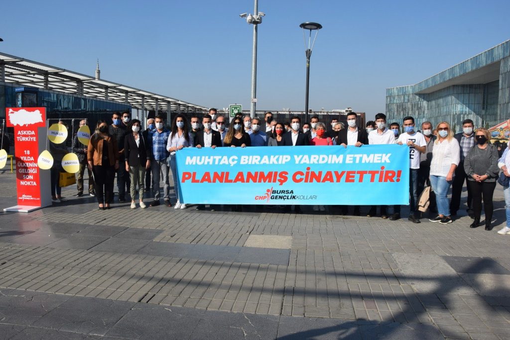 Cumhuriyet Halk Partisi Bursa İl Gençlik Kolları Başkanı Fatih Yalçın Yazıcı, iktidar ortağı MHP tarafından başlatılan askıda ekmek kampanyasını eleştirerek, “Elbette ki askıda ekmek kültürü Türk milletinin yıllar boyunca fırınlarda uygulamış olduğu bir yardımlaşma göstergesidir. Ancak bu uygulamanın şehirlerin, ilçelerin meydanlarına bir platform koyup parti logosu ve genel başkan fotoğrafı yerleştirilerek yapıldığına ilk defa şahit oluyoruz. Oysa İktidar ortağı olarak sizin de sorumluluğunuz var” dedi.