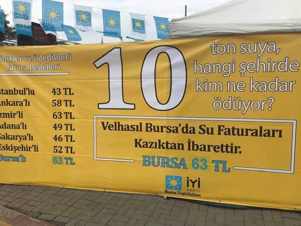 “Hatırlanacağı gibi 16 Eylül Çarşamba günü İYİ Parti Bursa Teşkilatları olarak, Acemler’deki BUSKİ binasının önünde, Bursalıların en pahalı suyu kullandığını yüksek perdeden dile getirdik.